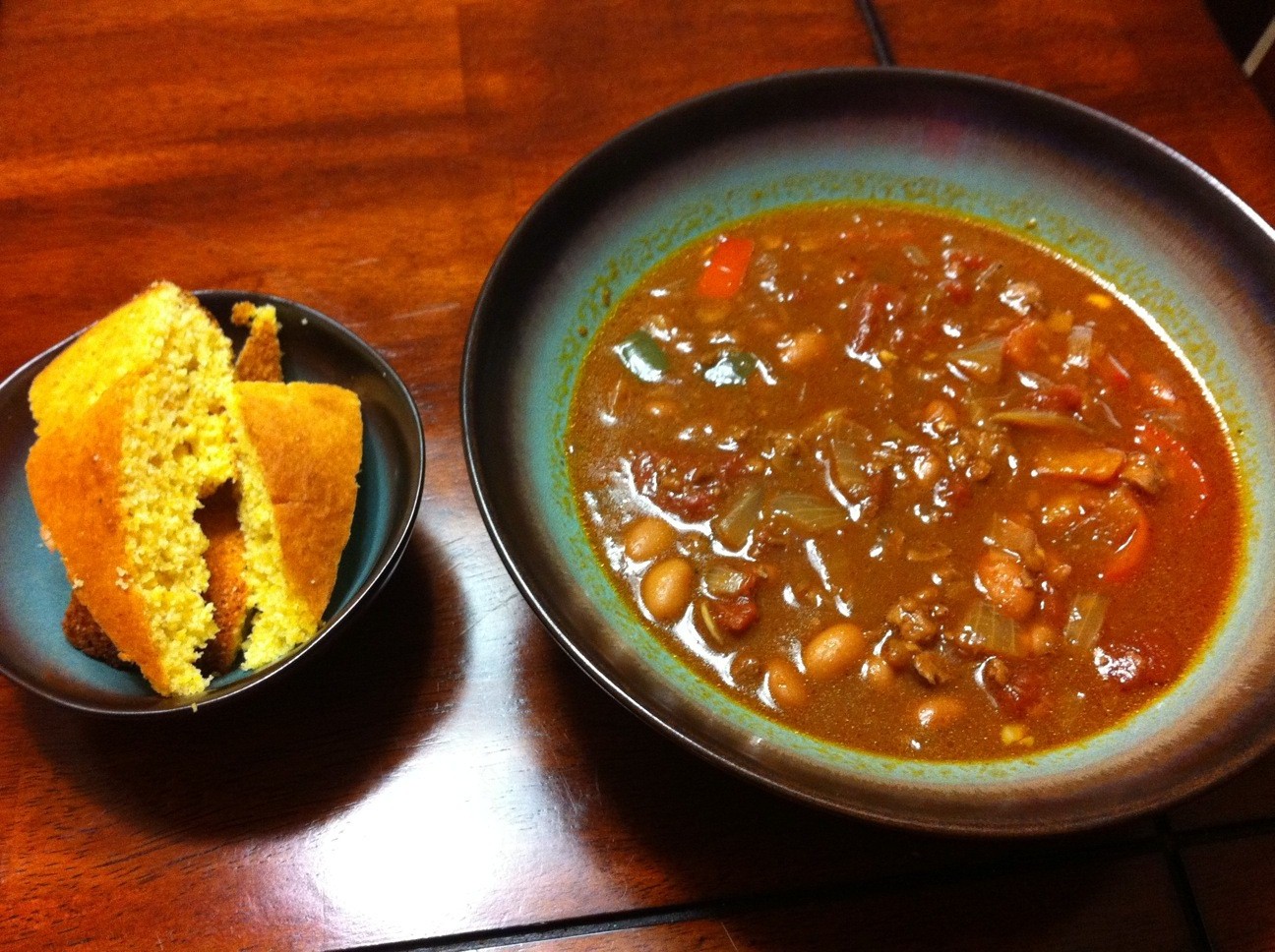 This delightfully spicy and sinfully rich chili is perfect on a chilly winter night. It is really easy to make, but it does take some time as you have to let it simmer for 30 minutes. I baked some old-fashioned cornbread to go with it, but I'm sure any kind of bread will do. This chili tastes even more amazing the next day if you can manage not to eat it all! Makes 6 - 8* servings.